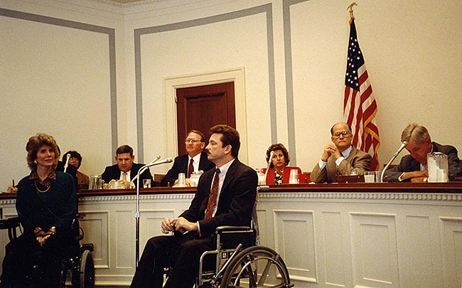 In 1988, Joni Eareckson Tada was invited to serve on the National Council on Disability under Presidents Reagan and Bush, a council that authored the first draft of the Americans with Disabilities Acts (ADA). Passed by Congress in 1990, the ADA was the nation’s first comprehensive civil rights law on disability. After the ceremony of thousands witnessing President George HW Bush signing the Americans with Disabilities Act into law, the entire National Council on Disability gathered for a special celebratory reception.